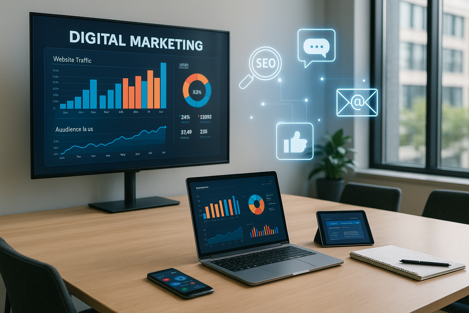 One of the most powerful aspects of digital marketing is measurability. Platforms like Google Analytics, Meta Ads Manager, and email dashboards show:
